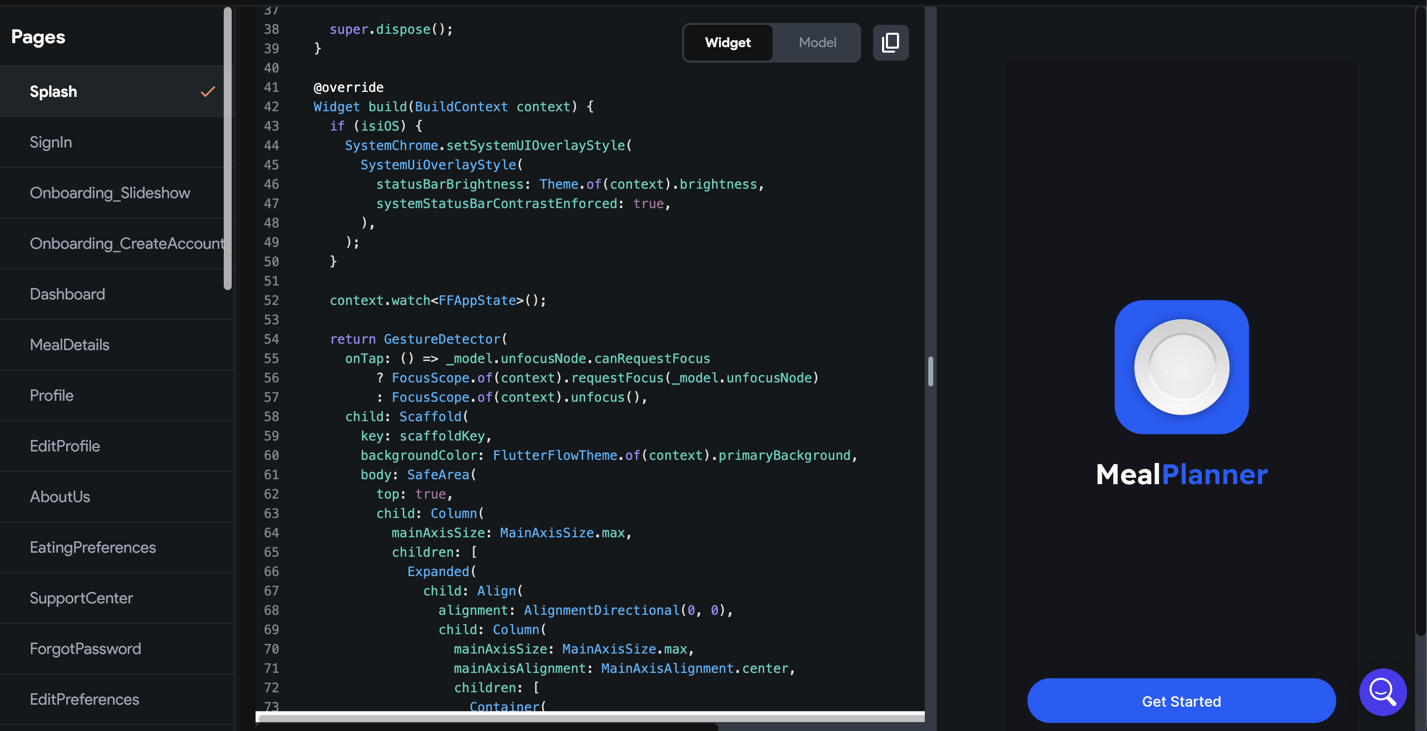 코드 생성: FlutterFlow는 사용자가 시각적 인터페이스에서 정의하는 구성 요소 및 구성을 기반으로 Flutter 코드를 생성합니다. 생성된 이 코드는 Flutter의 구문과 구조를 준수하여 개발자에게 필요한 경우 추가로 구축하고 맞춤설정할 수 있는 기반을 제공합니다.