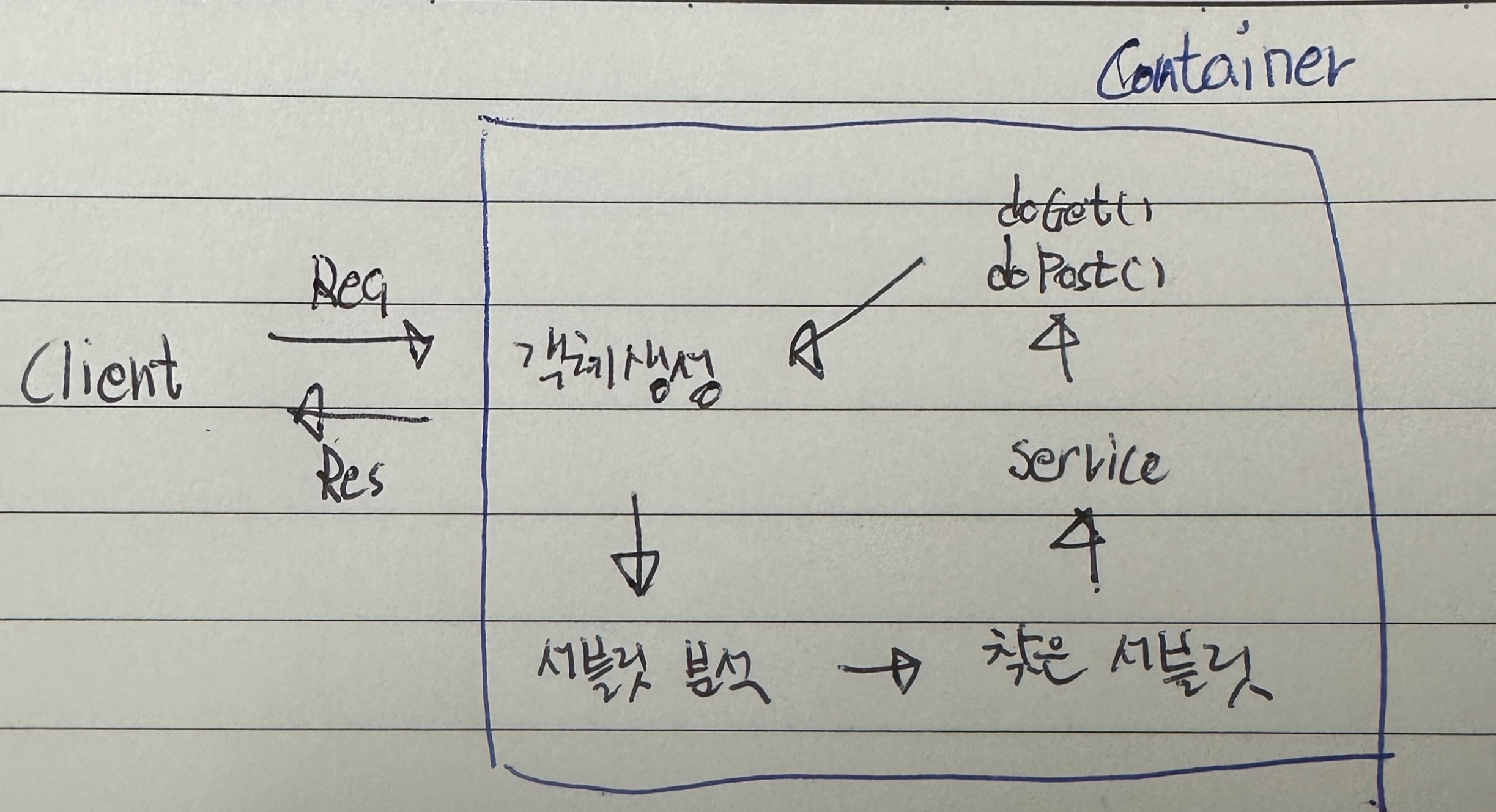 보안 및 자원 관리: 보안 기능을 제공하고, 서블릿이 사용하는 자원을 효율적으로 관리합니다.